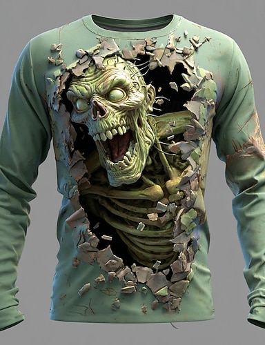 Męskie Wzór 3D Zombie 3D Podkoszulek Długi rękaw Podkoszulek Druk 3D Półgolf Koszula Moda Przesadny Ulica Codzienny Niebieski Zielony Szary Lato Wiosna Jesień Odzież S M L XL XXL XXXL