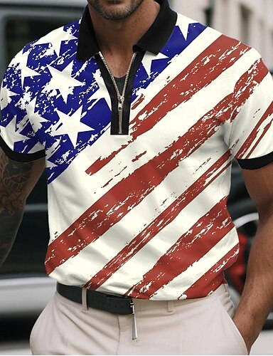 4 lipca 2026 250. Męskie Amerykańska flaga USA Gra polo Krótki rękaw Koszulki polo Koszule z kołnierzykiem Codzienny Na zewnątrz Dzienne zużycie Druk 3D Lato Wiosna Jesień Niebieski