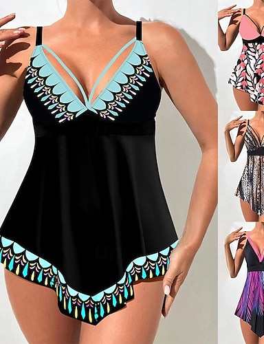 Damskie Stroje kąpielowe 2 szt Krótkie spodnie Kostium kąpielowy Odkryte plecy Urlop Stroje plażowe Graficzny Dekolt w kształcie litery U Bez rękawów Kostiumy kąpielowe