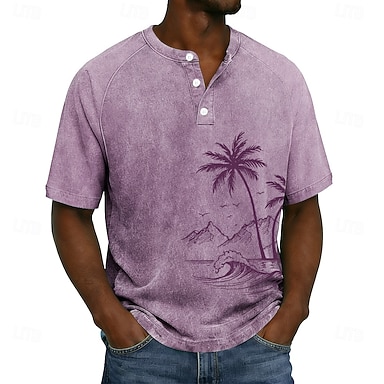Męskie Drzewo kokosowe Umyty Koszulki Henley Top Wyprana koszula Krótki rękaw Zabytkowe Designerskie Codzienny Codzienny Na zewnątrz Urlop Lato Wiosna Na każdy sezon Jasnoniebieski Fioletowy Szary
