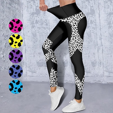 Damskie Spodnie do jogi Podnoszenie pośladków Wyszczuplenie brzucha Wysoka talia Trening w siłowni Bieganie Zdatność Legginsy 3/4 Panterka Geometria Błękit pawi Czarny Żółty Jesień Zima Sport Odzie