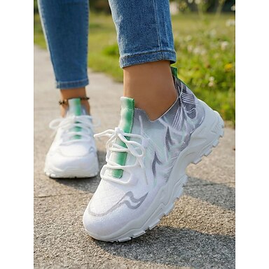 Damskie lekkie, codzienne trampki do chodzenia z przewiewną, dzianinową cholewką - sznurowane, nowoczesne, sportowe i wygodne buty do noszenia na co dzień, na spacery, podróże, dojazdy do pracy, spacery na świeżym powietrzu i do fitnessu