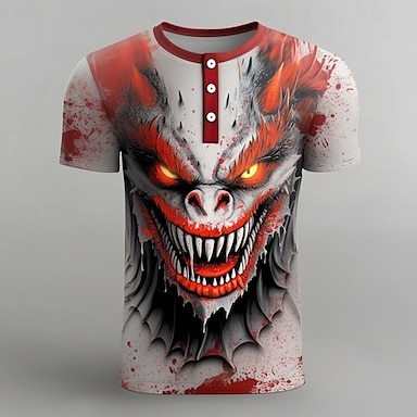 Męskie 3D Podkoszulek Krótki rękaw Podkoszulek Druk 3D Półgolf Koszula Przesadny Designerskie Przerażenie Impreza Ulica Święto Czarny Lato Wiosna Odzież S M L XL XXL XXXL
