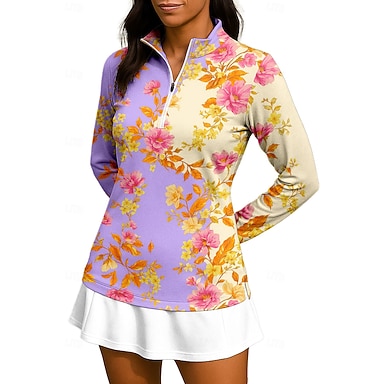 Damskie Kwiatowy Koszulka polo Koszulka do tenisa Bluza tenisowa Długi rękaw Nadruk Quarter Zip Pullover Ochrona UV Elastyczny Oddychający Bransoletka tenisowa Golf Pikle Kołnierz stawiany Kołnierz