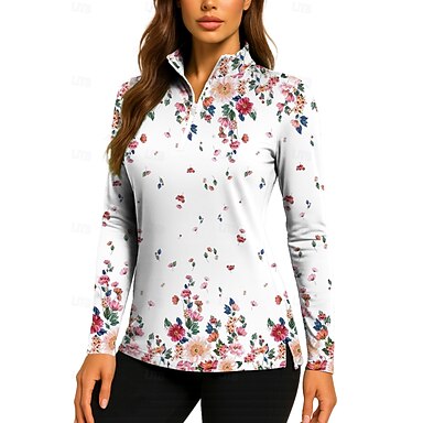 Damskie Kwiatowy Koszulka polo Koszulka do tenisa Bluza tenisowa Długi rękaw Nadruk Quarter Zip Pullover Ochrona UV Elastyczny Oddychający Bransoletka tenisowa Golf Pikle Kołnierz stawiany Kołnierz