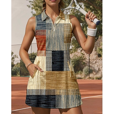 Damskie Pled / Check Sukienka do tenisa Sukienka sportowa Bez rękawów Nadruk Oddychający Bransoletka tenisowa Golf Badminton Kołnierz polo Kołnierz zapinany na zamek Sukienka Khaki Odzież tenisowa