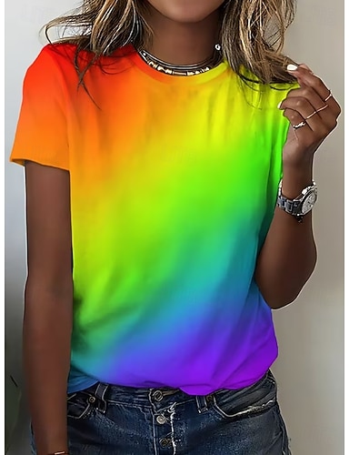 Damskie Podkoszulek Nadruk Ombre Graficzny Kolorowy blok Zabytkowe Elegancki Klasyczny Krótki rękaw Półgolf Okrągły dekolt Zwykłe topy Codzienny Niebieski Czarny Fuksja Brązowy Zielony Lato Wiosna