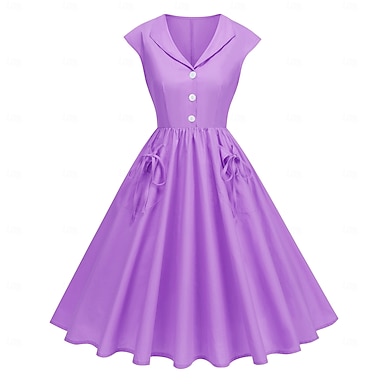 Lata 50. Hepburn Retro / vintage Południe Sukienka o kroju A Sukienka huśtawka Rozkloszowana sukienka Krótkie rękawy Krój A Strój na bal maskowy Damskie Karnawał Walentynki Bal maskowy Urlop Na co