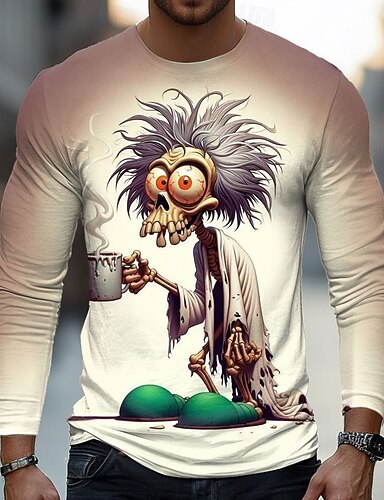 Halloween Dla chłopców 3D Czaszka Podkoszulek T-shirt Długi rękaw Wiosna Jesień Moda Podstawowy Dzieci 4-12 lat Półgolf Na zewnątrz Codzienny Regularny