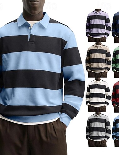 Męskie Koszulki polo Koszula golfowa Codzienny Ulica Klapa Długi rękaw Podstawowy Nowoczesny Poziome paski Guziki Wiosna Jesień Regularny Niebieski Szary Biały Czerwony Granatowy Fioletowy Koszulki