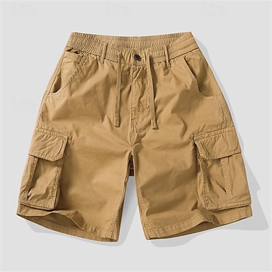 Męskie Bojówki Spodenki cargo Szorty Szorty na co dzień Kieszeń Elastyczny pas Równina Długość do łydki Codzienny Na zewnątrz Streetwear Moda Moda miejska Czarny Khaki Nieelastyczny
