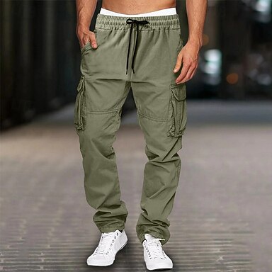 Męskie Spodnie cargo Uprawiający jogging Spodnie Ściągana na sznurek Elastyczny pas Multi Pocket Równina Zdatny do noszenia Na zewnątrz Codzienny Kemping i wycieczki Moda Klasyczny Zieleń wojskowa