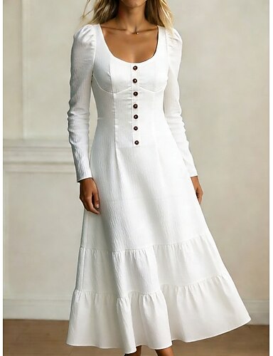 Damskie Sukienka midi Biała sukienka Elegancja Moda Nowoczesny Codzienny Na zewnątrz Urlop Regularny Równina Długi rękaw Półgolf Biały Wiosna Jesień
