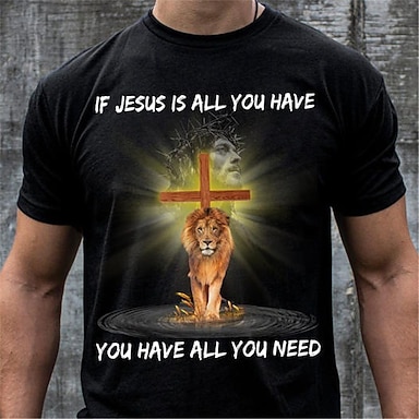 Koszulka męska Pismo Święte Jezus Wiara Krótki Rękaw Koszulka 3D Druk Okrągły Dekolt Moda Codzienna Podstawowa Ulica Casual Codzienna Czarna Czerwona Niebieska Odzież Letnia Wiosenna