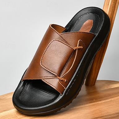 Brązowo-czarne sandały męskie na szerokich paskach, wygodne, codzienne kapcie z odkrytymi palcami, idealne na wakacje na plaży, relaks przy basenie, do noszenia w kurorcie, do użytku domowego, w podróży i na świeżym powietrzu
