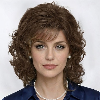 Elegancka peruka kręcona dla kobiet - bogaty brąz z miękką grzywką