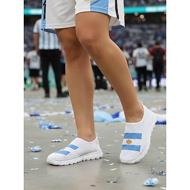 Damskie wsuwane trampki z flagą Argentyny – oddychające, siateczkowe buty codzienne dla fanów piłki nożnej, na spacery i letnie imprezy