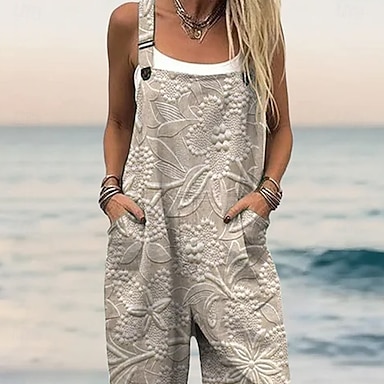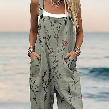 Kobiece ogrodniczki 100% bawełniane Aktywne w kwiaty Bez rękawów Proste z dekoltem kwadratowym z kieszeniami na wakacje Codzienny luźny krój Różowy fioletowy khaki latem