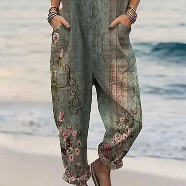 Kobiece ogrodniczki 100% bawełniane Aktywne w kwiaty Bez rękawów Proste z dekoltem kwadratowym z kieszeniami na wakacje Codzienny luźny krój Różowy czerwony zielony latem