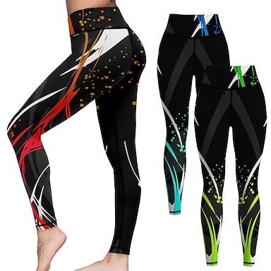 Damskie Spodnie do jogi Podnoszenie pośladków Wyszczuplenie brzucha Wysoka talia Trening w siłowni Bieganie Zdatność Legginsy 3/4 Graficzny Czerwony Niebieski Zielony Jesień Sport Odzież sportowa