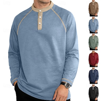 Męskie Wzór sztucznego patchworku Podkoszulek Koszula Henley Koszulki Długi rękaw Zabytkowe Designerskie Elegancki Codzienny Na zewnątrz Sport Wiosna i lato Na każdy sezon Niebieski Henley Koszulka