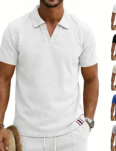 Męskie Koszulki polo waflowe Gra polo Codzienny Ulica Klapa Krótki rękaw Podstawowy Nowoczesny Równina Lekki Oddychający Lato Wiosna Luźna Czarny Biały Królewski błękit Khaki Jasnoszary Koszulki polo