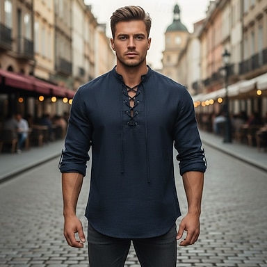Męskie Koszula Koszula z kołnierzykiem chińskim Koszula z kołnierzykiem typu stójka Koszula Popover Codzienna koszula Bawełniana koszulka Równina Urlop Hawajskie Czarny Biały Długi rękaw Stójka