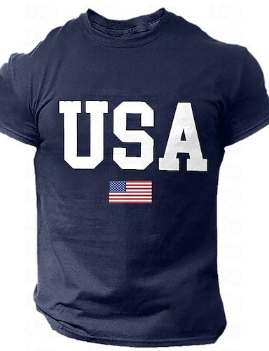 Ameryka 250-lecie Patriotyczne T-Shirty dla Mężczyzn Amerykańska Flaga T-Shirt Krótki Rękaw 3D Print Crew Neck Okrągły Dekolt Modna Codzienna Podstawowa Ulica Casual Codzienna Jasnoniebieska