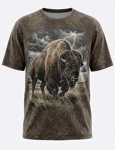 Koszulka męska z krótkim rękawem i grafiką Buffalo Buffalo Lightning w stylu vintage, brązowa, z motywem dzikiej przyrody, rozmiar S, M, L, XL, XXL, XXXL