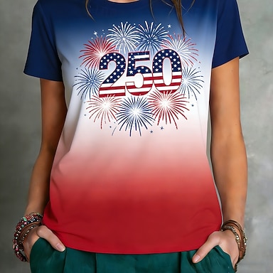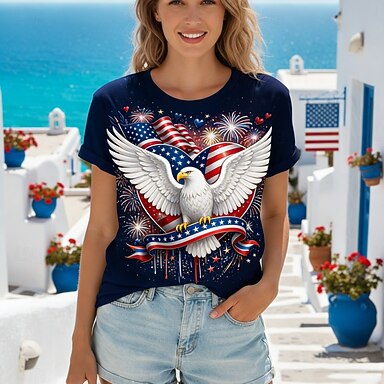 Amerykański Dzień Niepodległości Damskie Podkoszulek Koszulka Nadruk Graficzny Flaga Ameryki Elegancki Klasyczny Codzienny Krótki rękaw Półgolf Zwykłe topy Codzienny Sport Wyjściowe Czerwony Lato