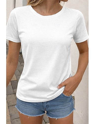 Damskie Podkoszulek Oczko Równina Klasyczny Codzienny Krótki rękaw Okrągły dekolt Zwykłe topy Codzienny Wyjściowe Weekend Niebieski Czarny Biały Jasnozielony Czerwony Lato Wiosna