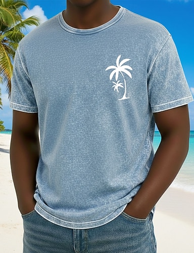 Męskie Palma kokosowa Podkoszulek Koszulka do mycia minerałów Krótki rękaw Podkoszulek Kwasowe mycie Półgolf Koszula Vintage Retro Codzienny Plaża Podróże Niebieski Fioletowy Szary Lato Wiosna Odzież