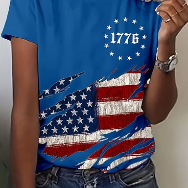 Koszulka patriotyczna damska na Dzień Niepodległości ze stylową flagą swobodna z długim rękawem dekoltem w kształcie litery V regularna na co dzień nadruk biała czerwona niebieska zielona wiosenna