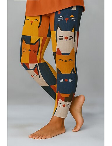 Damskie Getry Urlop Zabytkowe Styl etniczny Pełna długość Wysoka talia Graficzny Kot Druk 3D Szybkie wysychanie Oddychalność Miękka Elastyczny Codzienny Dom Na zewnątrz Niebieski Czarny Pomarańczowy