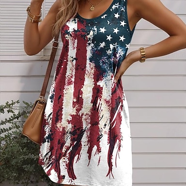 Dzień Niepodległości Patriotic Women's Camisole Tank Top Flaga USA Stylowy Bez Rękawów Zaokrąglony Dekolt Zwykłe Bluzki Codzienne Granatowe Lato