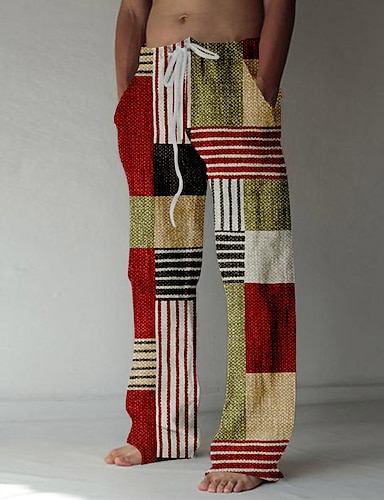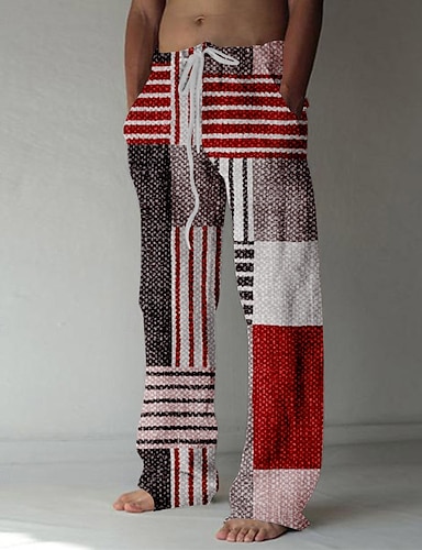 Męskie Kratka Koszula golfowa Krótki rękaw Koszulki polo Koszule z kołnierzykiem Zabytkowe Codzienny Ubrania wakacyjne Ubrania formalne Ubrania festiwalowe Guziki Druk 3D Lato Czerwony Niebieski