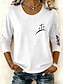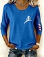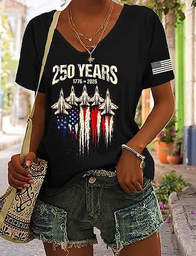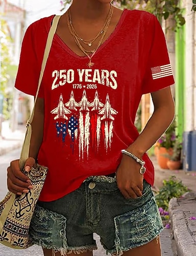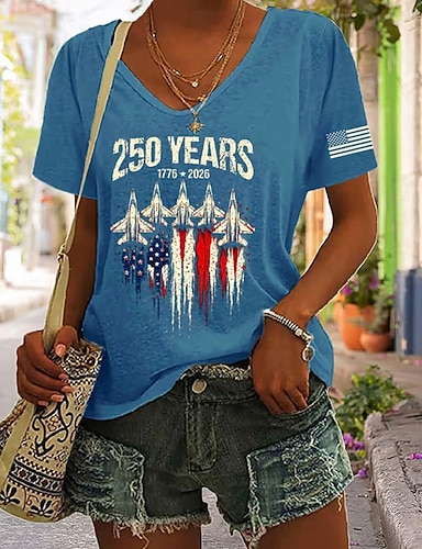 Amerykański Dzień Niepodległości Damskie Podkoszulek Nadruk Graficzny Flaga Zabytkowe Moda Codzienny Krótki rękaw W serek Zwykłe topy Codzienny Niebieski Biały Czerwony Lato Wiosna