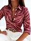 Damskie Koszula Bluzka Guziki Nadruk Graficzny Geometryczny Prążki Zabytkowe Elegancki Codzienny Długi rękaw Kołnierzyk koszuli Zwykłe topy Codzienny Czarny Czerwony Fioletowy Zielony Khaki Wiosna