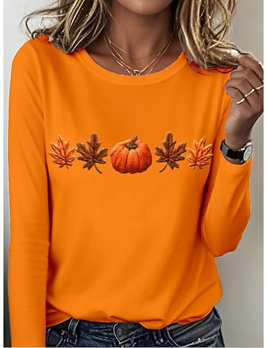 Damskie Podkoszulek Nadruk Graficzny Rośliny Zabytkowe Elegancki Klasyczny Długi rękaw Półgolf Okrągły dekolt Zwykłe topy Codzienny Niebieski Czarny Pomarańczowy Ciemnoszary Szary Wiosna Jesień Zima