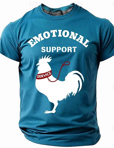 Męska krótka koszulka z grafiką 'Emocjonalne wsparcie serwisowy kogut' Zabawna koszulka z grafiką