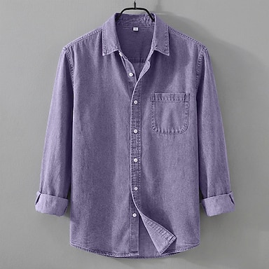 Męskie Koszula Codzienna koszula Zapinana na guziki koszula Koszula ze 100% bawełny Acid Wash Koszula z kwasem Czarny Jasnozielony Burgundowy Granatowy Fioletowy Długi rękaw Równina Kołnierzyk koszuli