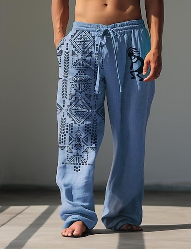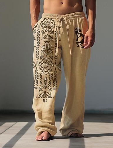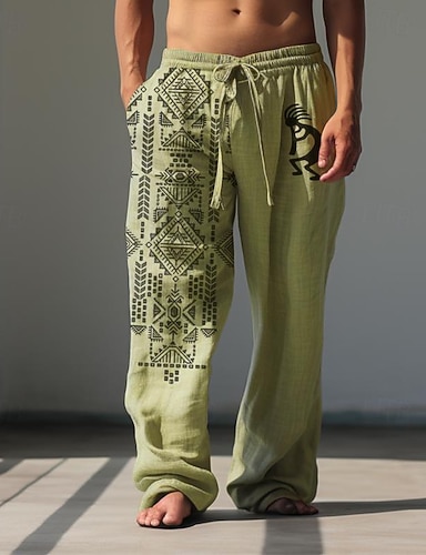 Męskie Kolorowy blok Niejednolita całość Skomplikowany kwiatowy Spodnie Spodnie codzienne Luźne spodnie Średni Talia Boho Dom Na zewnątrz Urlop Elastyczny pas ściągany sznurkiem Spodnie lniane z