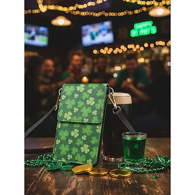 Damska torebka crossbody z nadrukiem koniczyny na Dzień Świętego Patryka – zielony wzór koniczyny, stylowa &świąteczny dodatek na uroczystości