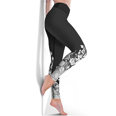 Damskie Spodnie do jogi Wyszczuplenie brzucha Podnoszenie pośladków Szybkie wysychanie Wysoka talia Joga Zdatność Trening w siłowni Legginsy 3/4 Doły Kwiatowy Złota Czarny Czarne combo Sport Odzie