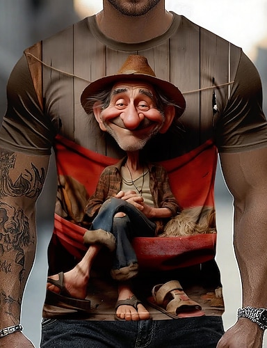 Męskie 3D Starzec Podkoszulek Krótki rękaw Podkoszulek Druk 3D Półgolf Koszula Przesadny Designerskie Codzienny Kij Impreza Brązowy Lato Wiosna Na każdy sezon Odzież S M L XL XXL XXXL