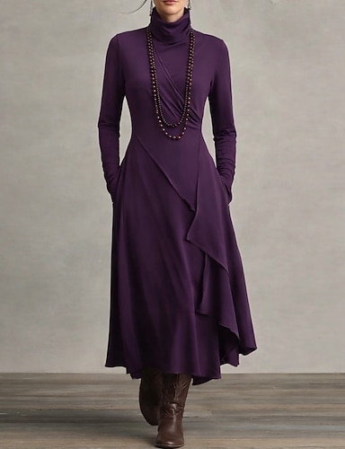 Damskie Długa sukienka sukienka maxi Sukienka rozkloszowana Elegancja Zabytkowe Moda Codzienny Na zewnątrz Wyjściowe Luźna Równina Długi rękaw Półgolf Szampański Zieleń wojskowa Królewski błękit