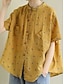 Damskie lniane jak sztuczny bawełniany len bluzka kieszeń guziki nadruk w kropki casual koszula z pół rękawem kołnierzyk długie topy codzienne biała żółta lato wiosna