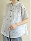 Koszula Damska Liniana Bluzka Kwiatowa Jak Len Vintage Casual Krótki Rękaw Okrągły Dekolt Regularne Top Codzienny Na Wyjście Guziki Print Jasnoniebieski Lato Wiosna