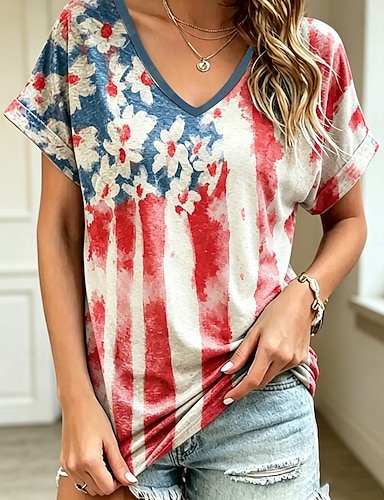 Damskie Typu Chino Getry Urlop Moda Moda miejska Capris Wysoka taliaPantsAmerykański Dzień Niepodległości Kwiaty Graficzny Flaga Ameryki Nadruk Komfort Miękka Wygodny Elastyczny Codzienny Na zewnątrz