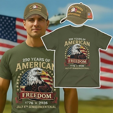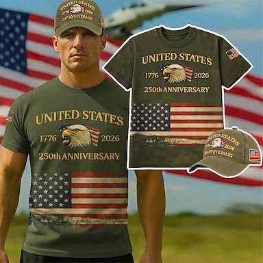 250-lecie USA koszula z długim rękawem i zestaw pasujących czapek - Flaga USA Semiquincentennial 4 lipca Dzień Niepodległości dla mężczyzn dorosłych